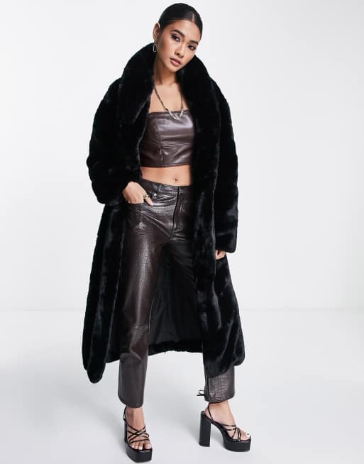 Black faux sale fur maxi coat