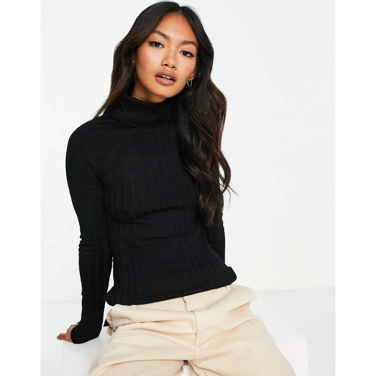 Black ribbed sale roll neck top