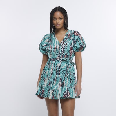 Blue animal sale print wrap dress