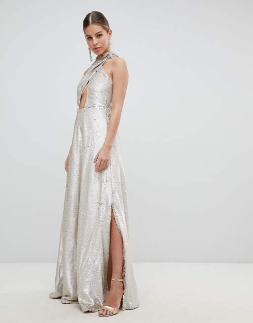 Club l fully embellished sale sequin wrap front maxi dress