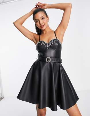 Faux leather sale skater dress