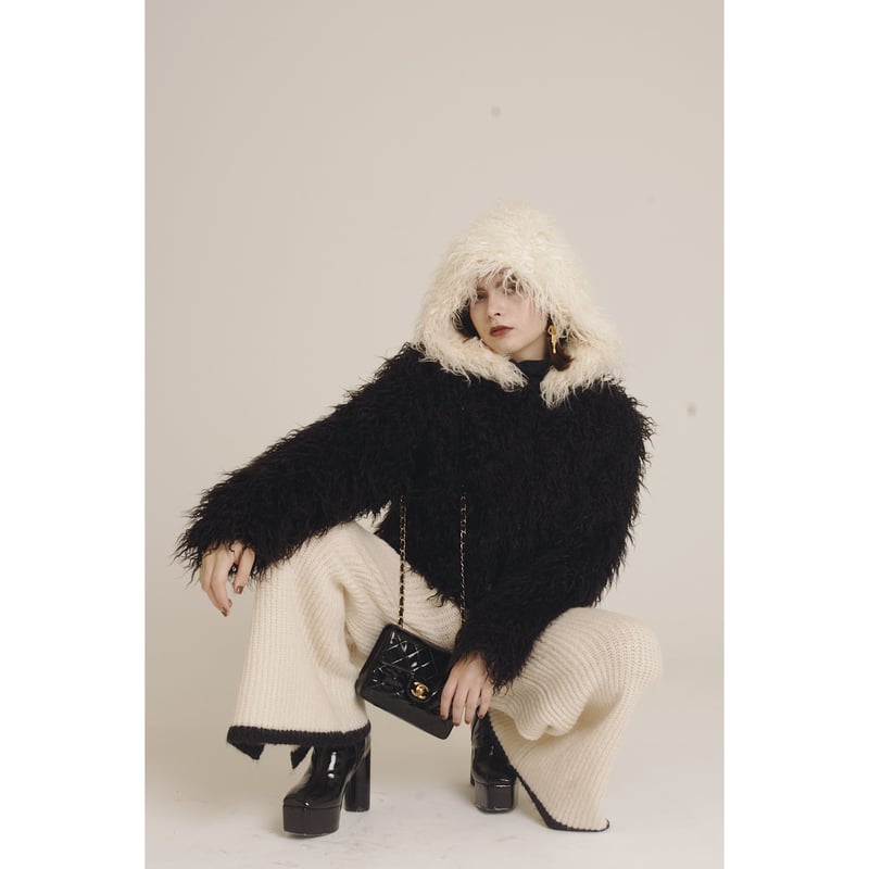 Product Item: Fluffy black sale coat with hood