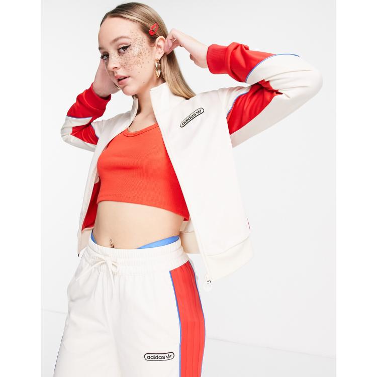 Adidas red sale cropped track jacket