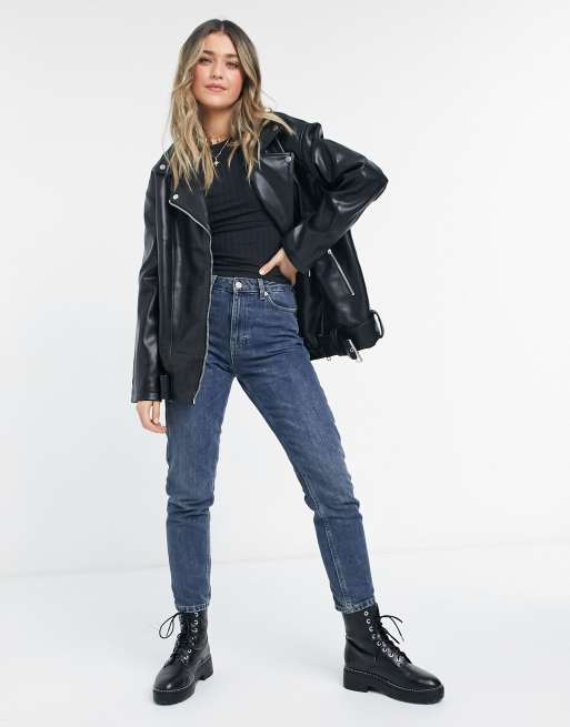 Long line sale leather jacket