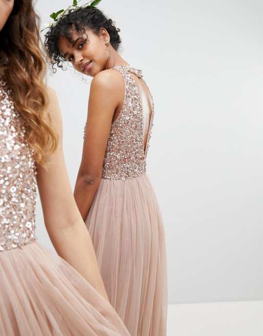 Product Item: Maya cut out back sale sequin and tulle maxi dress
