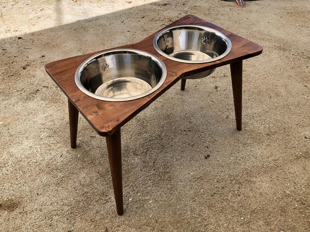 Mid century sale dog bowl stand
