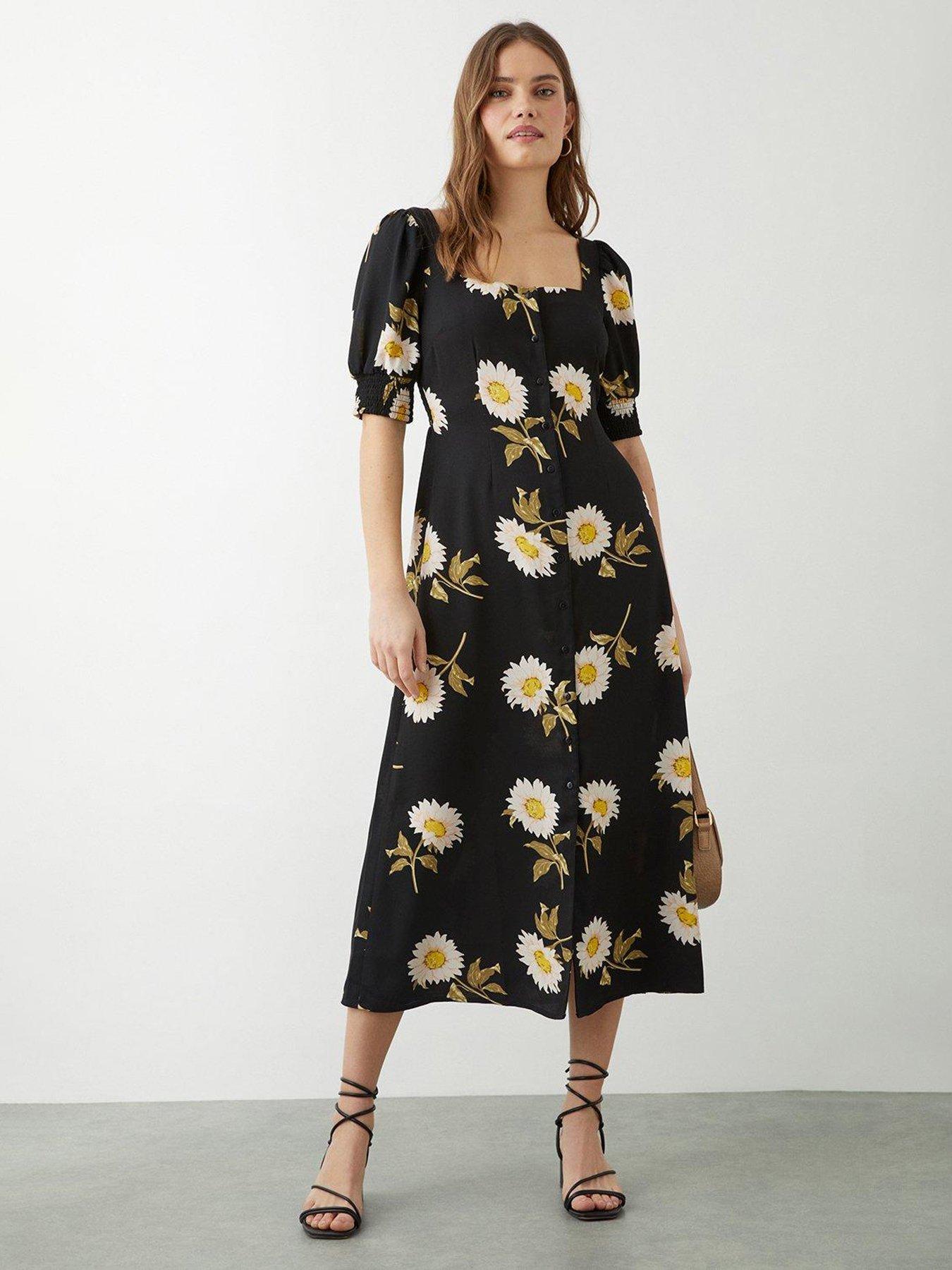 Midi black sale floral dress