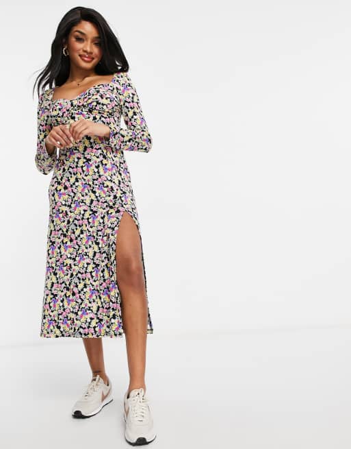 Petite long sale sleeve midi dress