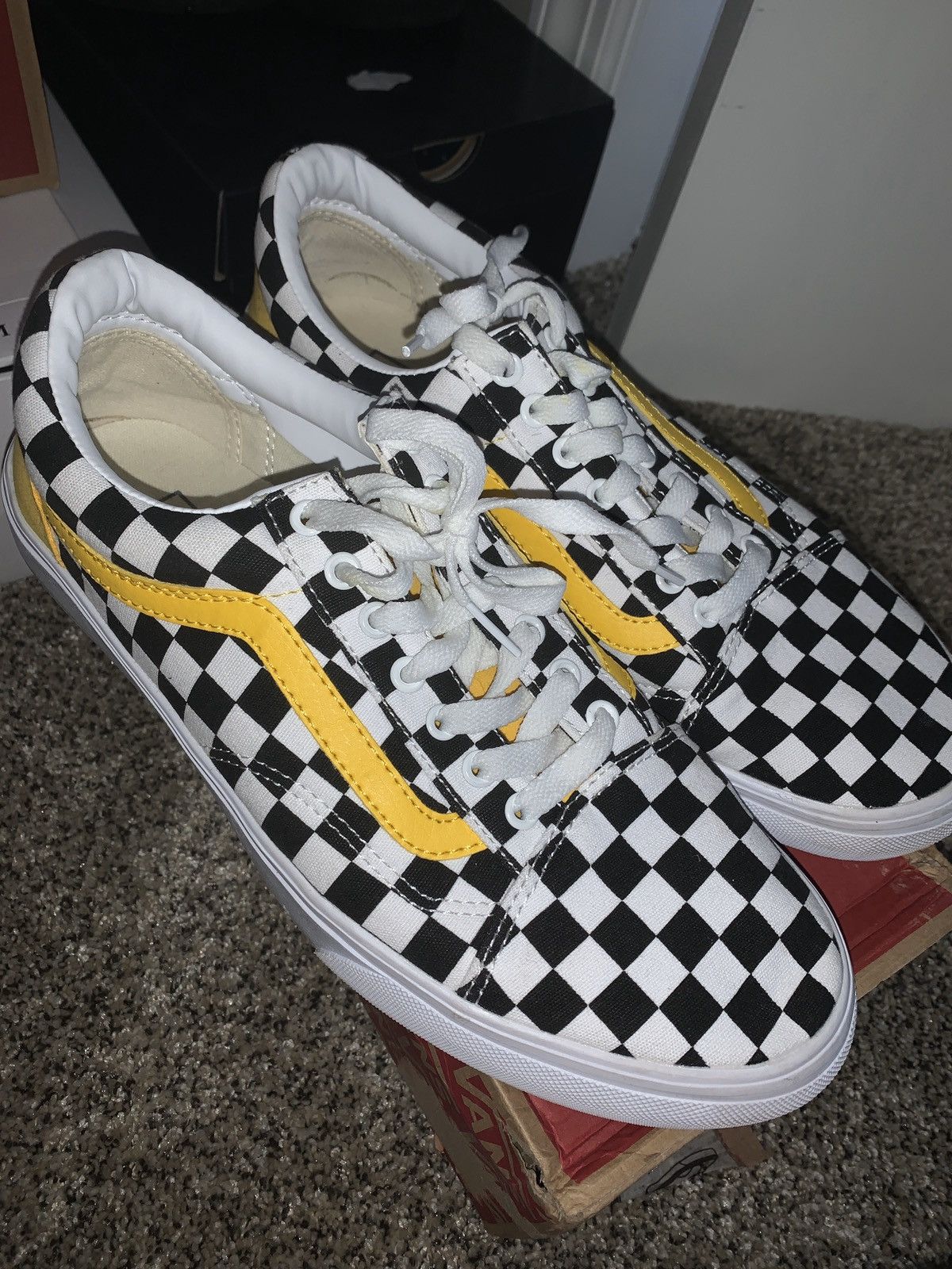 Vans checkered sale with yellow stripe