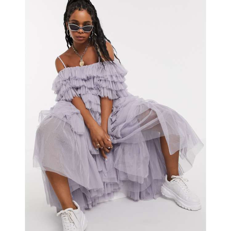 Asos bardot tulle sale ruched mini dress
