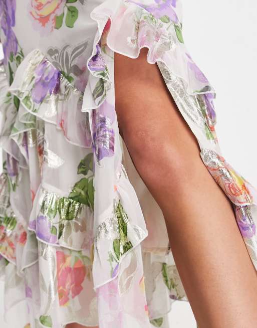 Product Item: Asos design dipped hem maxi dress with 3d embellishment sale and ruffle sleeve