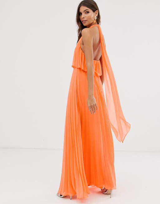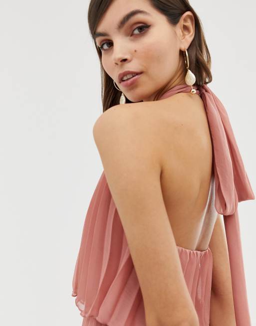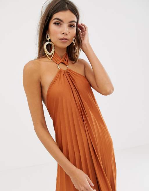 Asos design halter tie sale neck midi dress in pleat