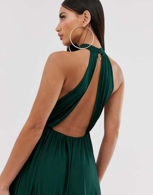 Asos design tall halter sale pleated waisted maxi dress