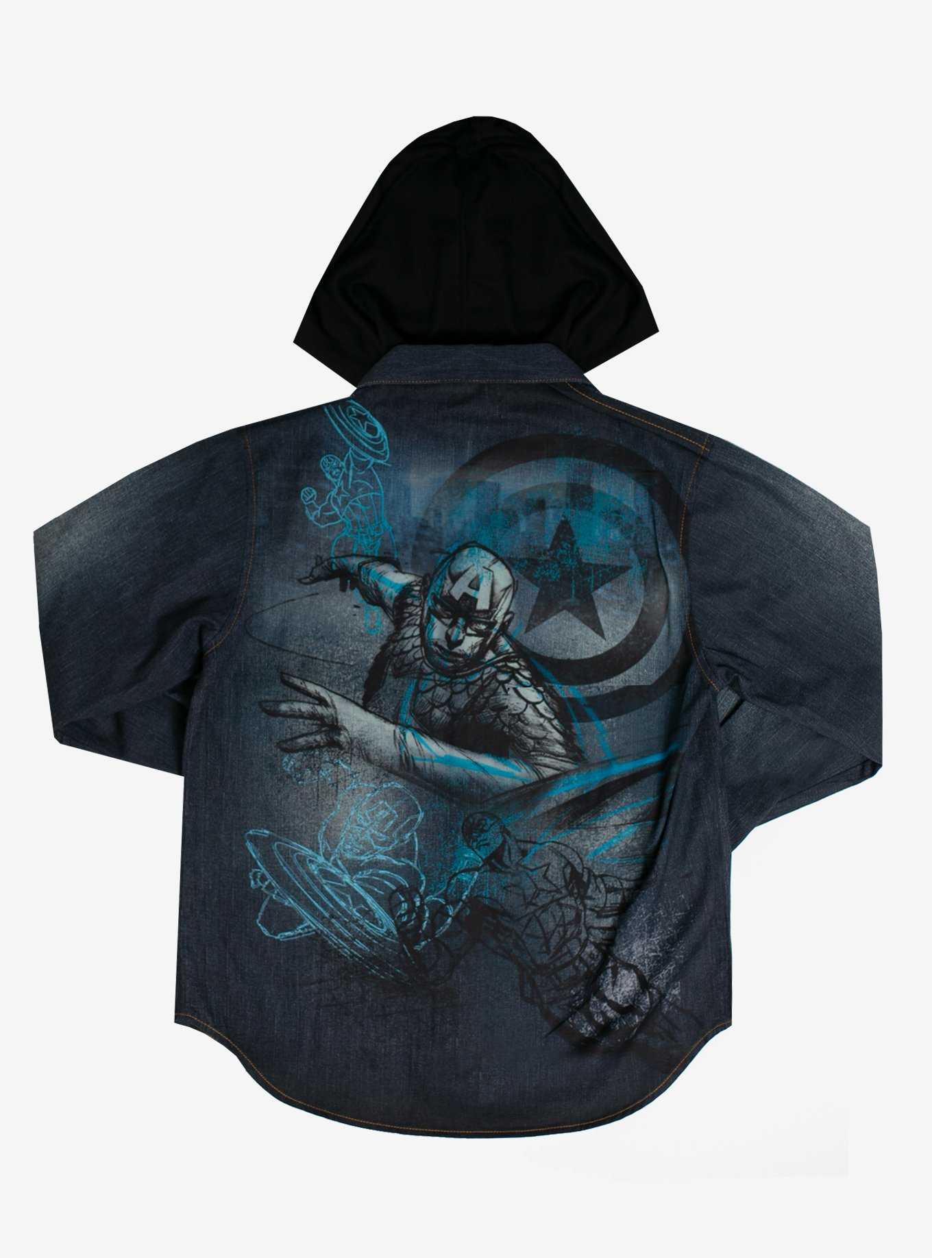 Product Item: Avengers hooded sale denim jacket